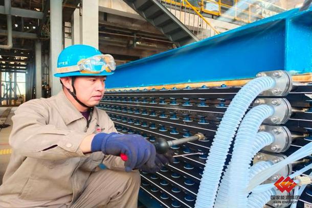 图为技术人员正在使用扭矩扳手复检电解单元槽螺栓紧固情况